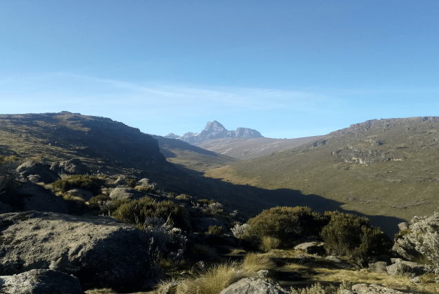 Today you commence early for a long trek on a wide track through the forest, with occasional sightings of elephant, bushbuck, buffalo and impala. Emerging from the forest, you walk through heather before crossing the Nithi River to reach the moorlands from where you can enjoy good views of the picturesque Gorges Valley, the Temple, lakes, mushroom rocks, billiards table and the high peaks. Total walking time approx. 8 hours, picnic lunch en route.